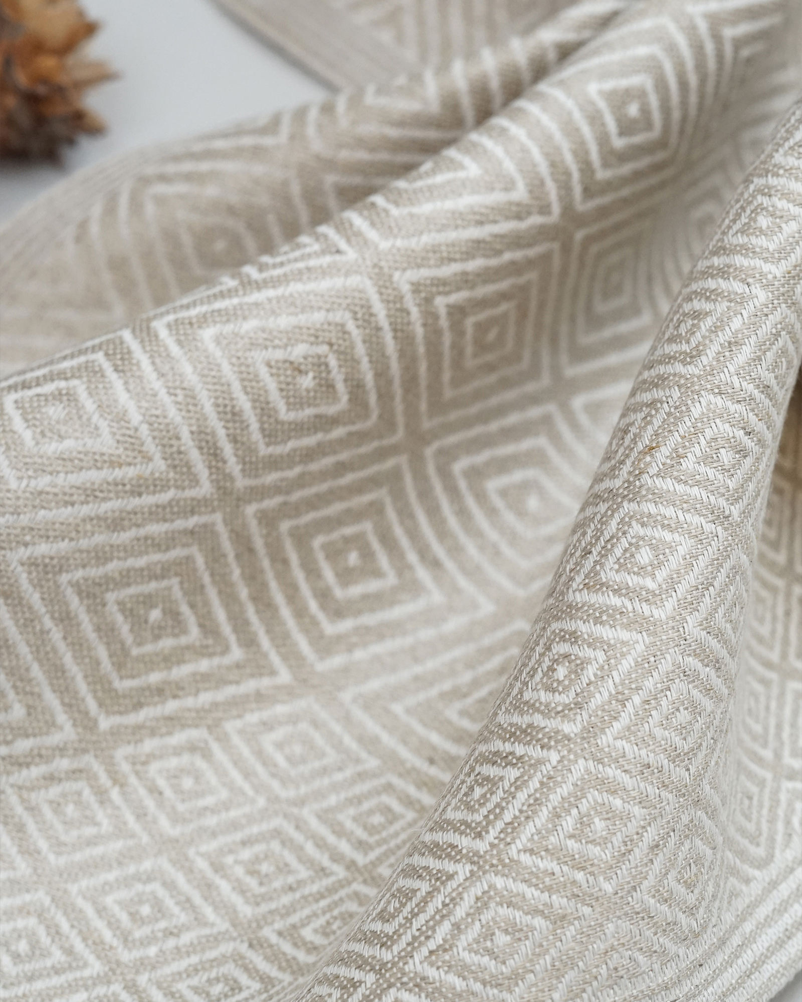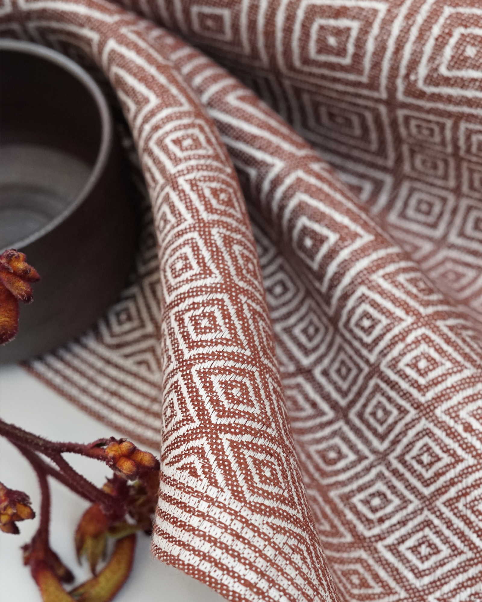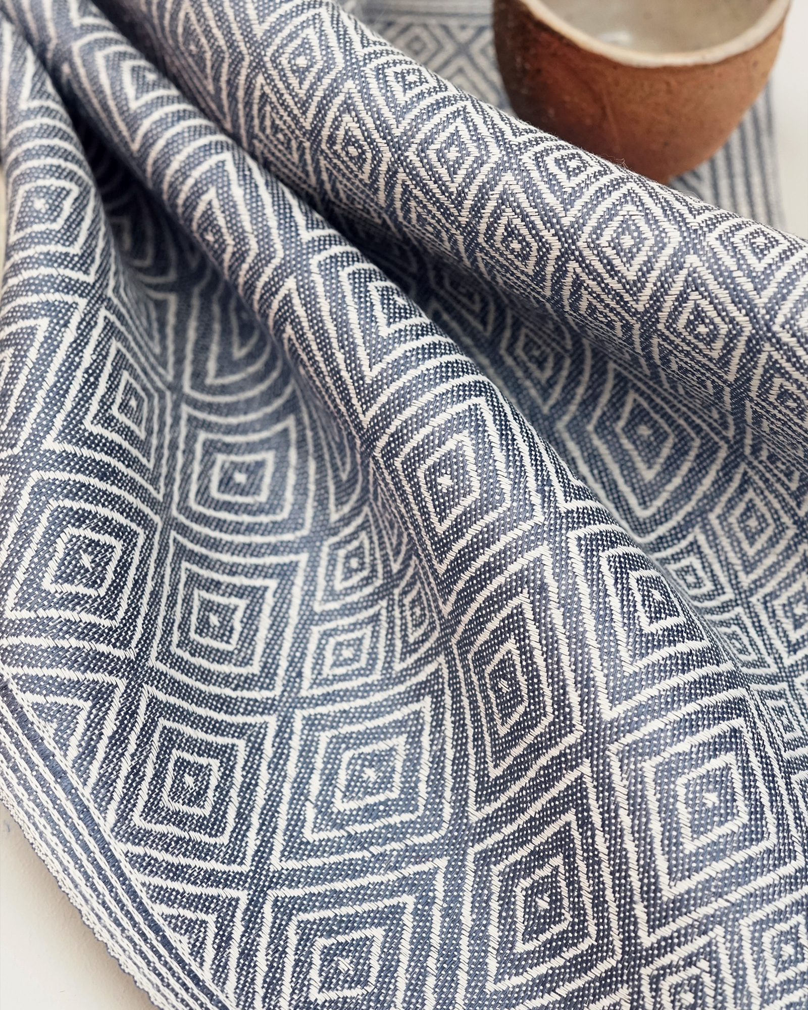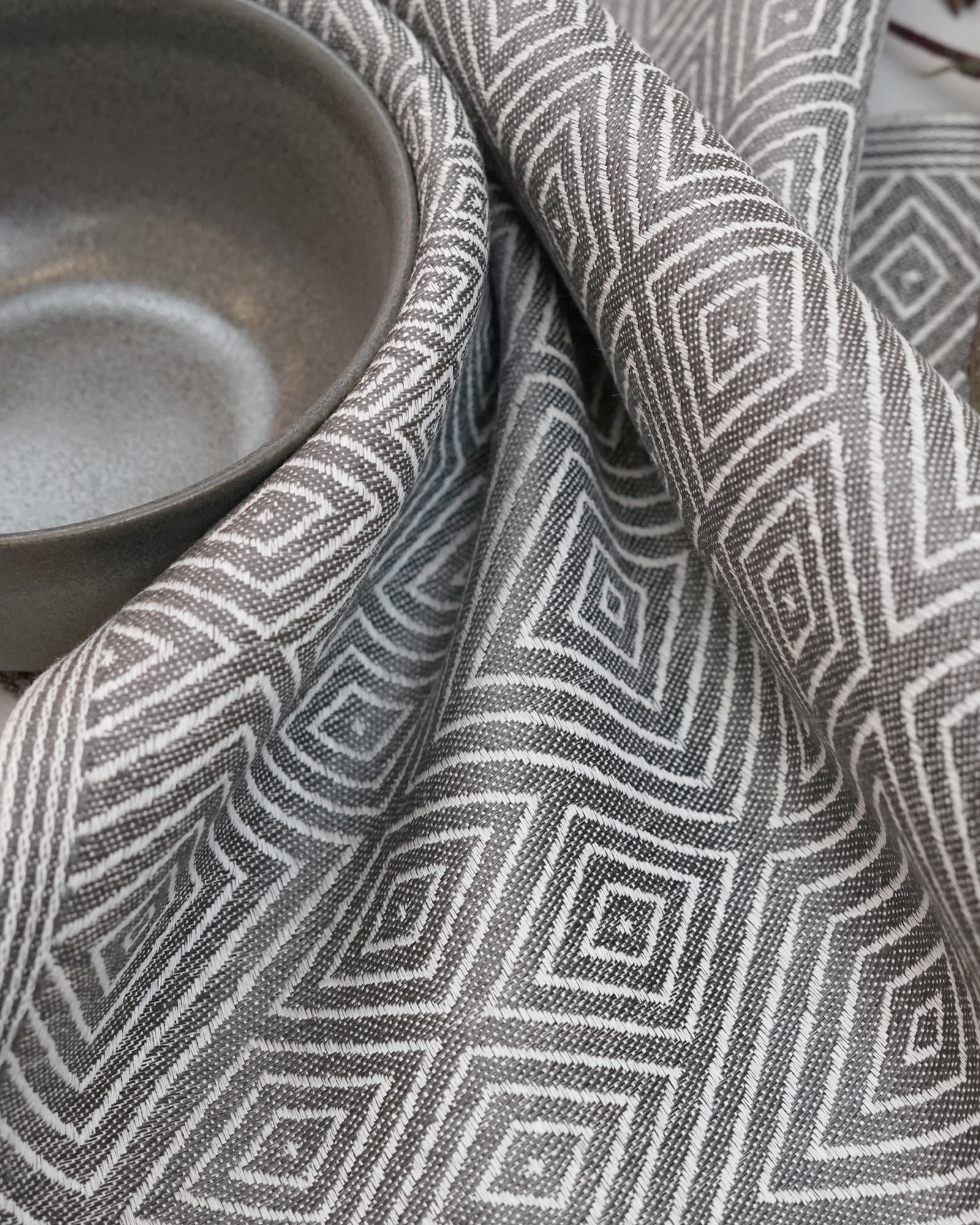 Gåsöga Leinentuch – eine zeitlose Kombination aus Tradition und modernem schwedischem Design. Das Leinentuch Gåsöga Gåsöga Kollektion von Klässbols Linneväveri, einer preisgekrönten Zusammenarbeit zwischen Klässbols und Iris Hantverk , entworfen von Margot Barolo und Ulrika Mårtensson. Das Muster ist eines der ikonischsten der schwedischen Mustertradition, bei der Geschichte auf Moderne trifft. Gåsöga zwinkert der Vergangenheit zu, trägt aber gleichzeitig einen zeitgenössischen Geist in sich, in dem Einfachheit und Komplexität in einem Meisterwerk der Textilkunst vereint sind.