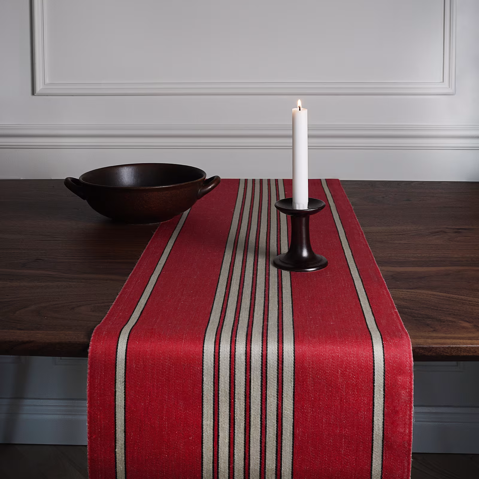 Tischläufer Gillet – ein Klassiker, der Generationen begeistert. Gillet ist einer unserer beliebtesten Tischläufer. Der wunderschöne rote findet jedes Jahr aufs Neue seinen Platz auf jedem Weihnachtstisch. Gewebt wird er, wie alle unsere Leinenstoffe, aus feinstem Leinen in unserer Weberei in Klässbol. Er verkörpert dieselbe Sorgfalt, Tradition und Präzision, die alles auszeichnet, was wir hier fertigen.
