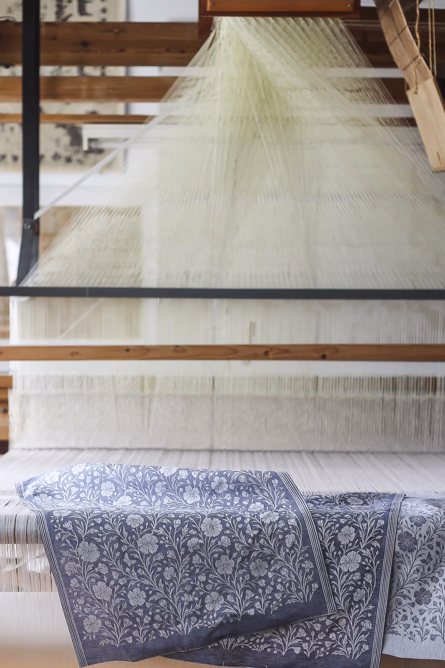 For Hanna, a pattern rarely begins at the drawing board, but in the encounter with the place, the material and the story. When the collaboration with Klässbols Linneväveri began, it was precisely the visit to Klässbol that set the tone for the entire Herbarium collection. Seeing line's threads, the looms and the people behind the craft became crucial to the expression.