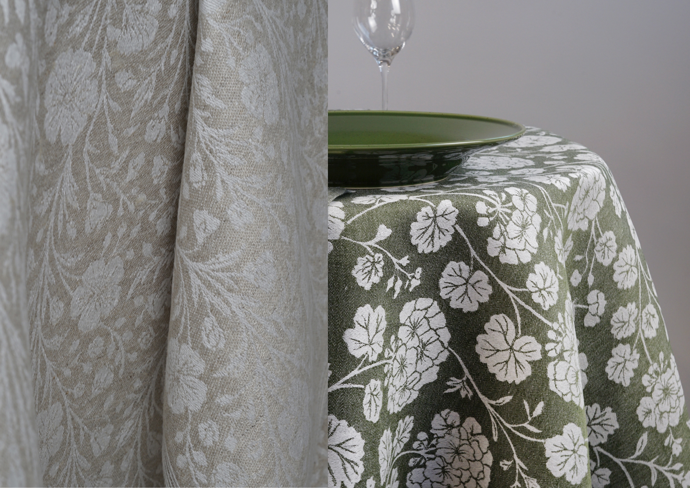 The collection consists of two patterns: Blååker and Mårbacka pelargon . Two different expressions, but with the same ambition: textiles for everyday use, created to last a long time and become part of the home.