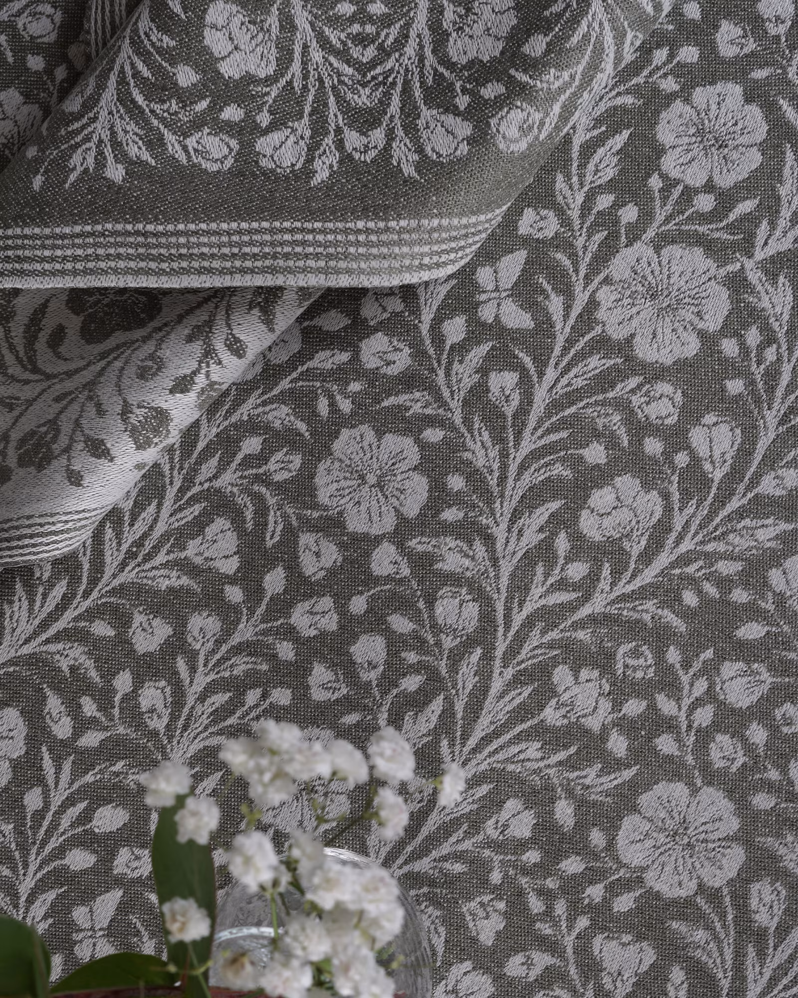 The tablecloth is woven in Klässbol with great care for both the pattern and the material. In the translation from sketch to fabric, the expression has been preserved, while the structure and luster of lineare given space. The result is a tablecloth with a calm but present expression – timeless, but never anonymous.