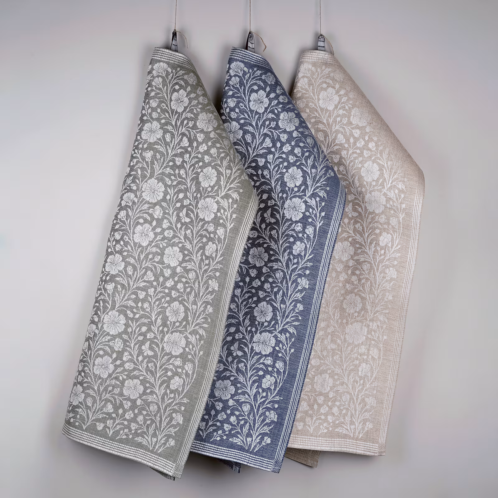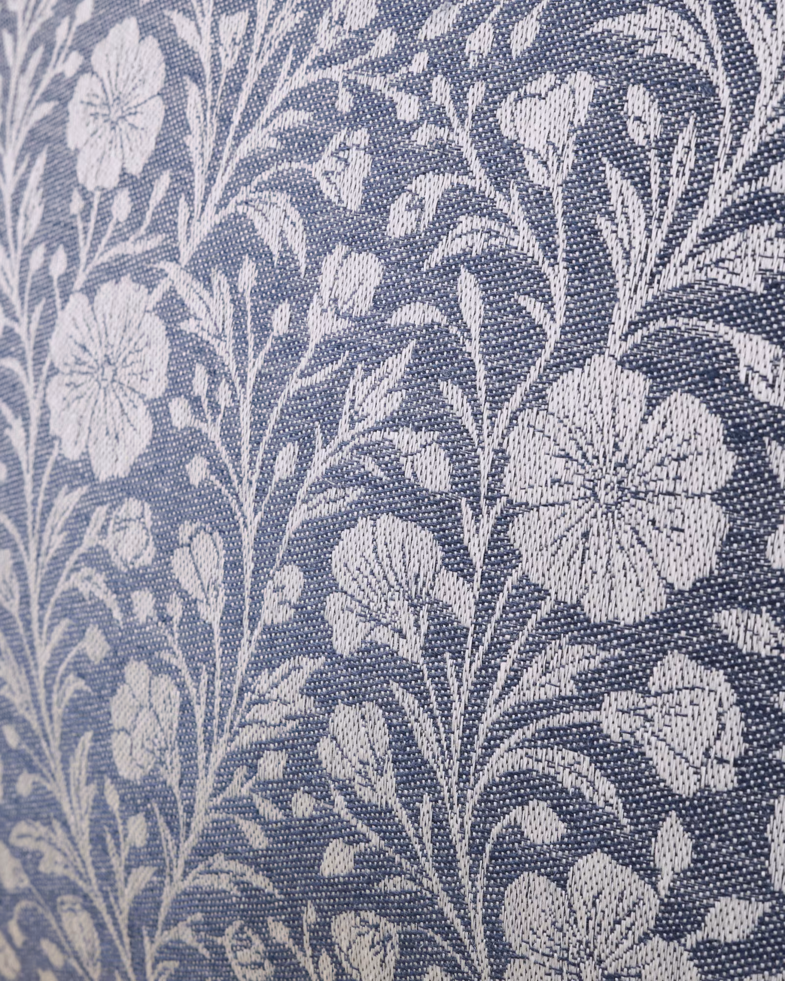 In Blååker, the pattern has grown out of the whole rather than from an individual flower. An undulating, harmonious expression that brings to mind a blooming flax field – a bluish sea that moves softly in the wind. A motif that reflects the origin of lineand reminds us of the material's close connection to nature.