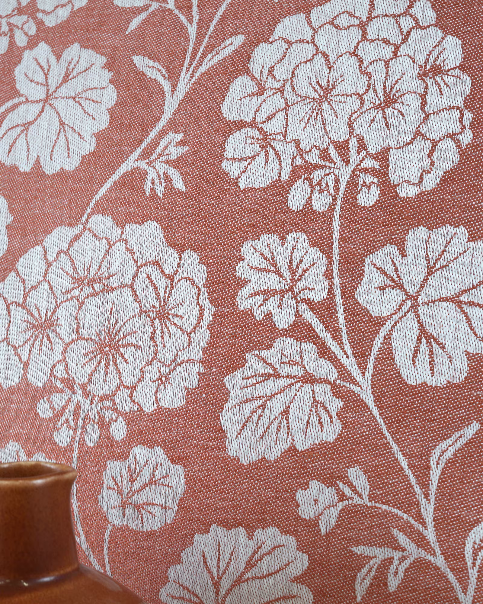For generations, geraniums have been a natural part of the home – in the kitchen, on the veranda and on the window sill. In Mårbacka pelargon Hanna Wendelbo has interpreted this beloved flower in a pattern that feels both personal and timeless.