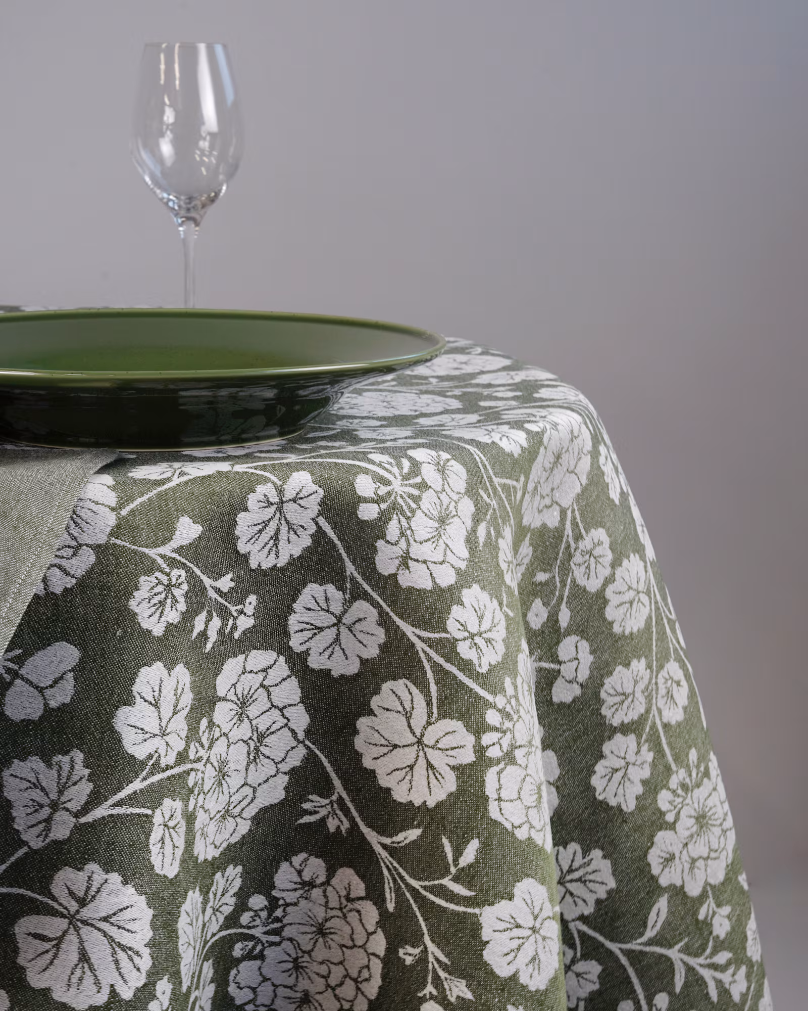 The inspiration comes from the Värmland landscape, from thoughts about Selma Lagerlöf's Mårbacka and the geraniums that have long been part of the place's identity. The result is a pattern that feels warm, alive and self-evident – created to become a part of the home, not just a table setting for special occasions. The tablecloth is woven from the highest quality linen in Klässbol, where every step in the process is characterized by long experience and craftsmanship. The expression of the pattern has been carefully translated from original sketch to fabric, so that the character of the geraniums is preserved while line plays the main role.
