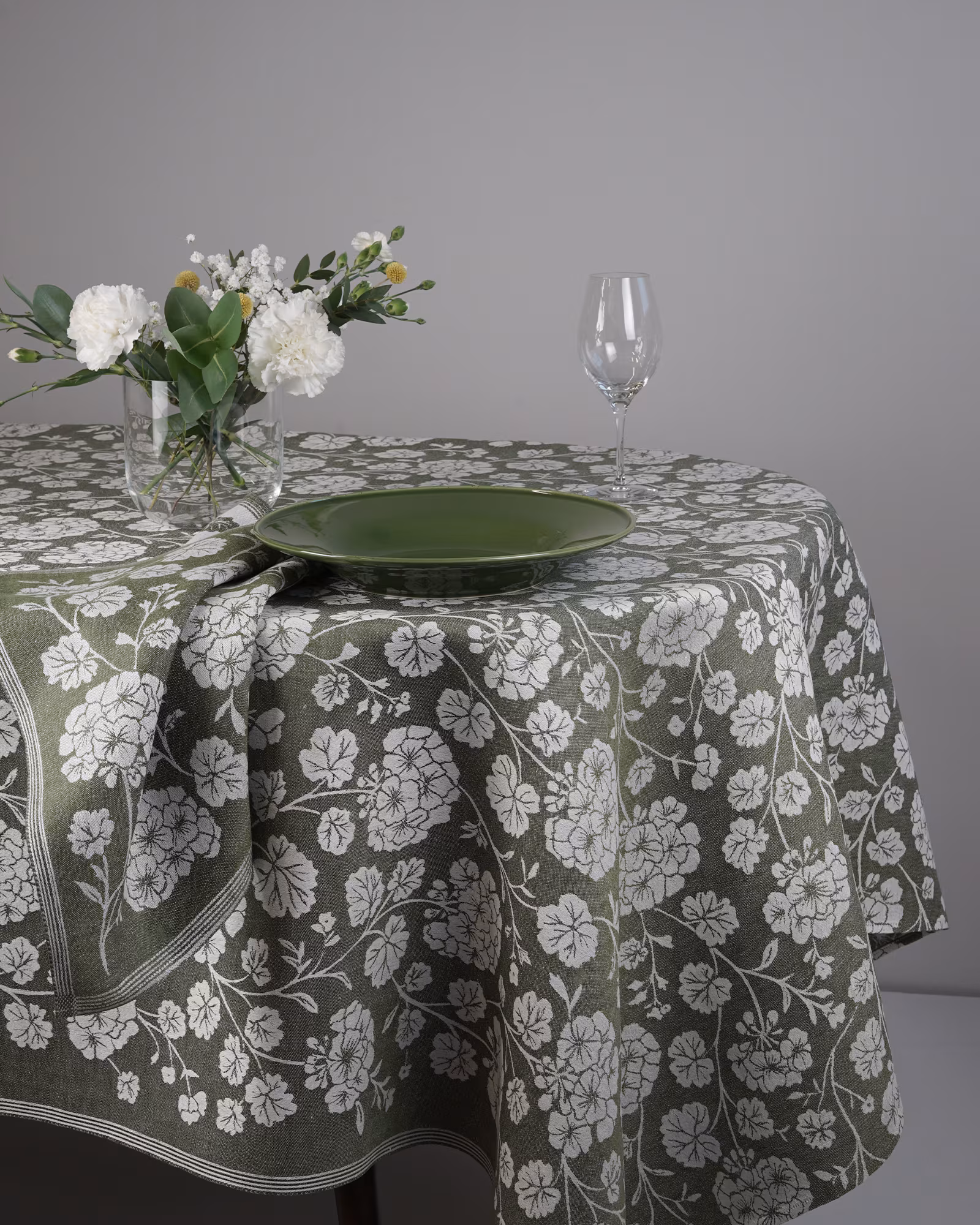 Mårbacka pelargon is a linen tablecloth that carries the story of home, craftsmanship and everyday beauty. Designed by Hanna Wendelbo in Klässbols Linneväveri's first collaboration with her, this is a pattern where the familiar shape of the geranium meets the timeless quality of line